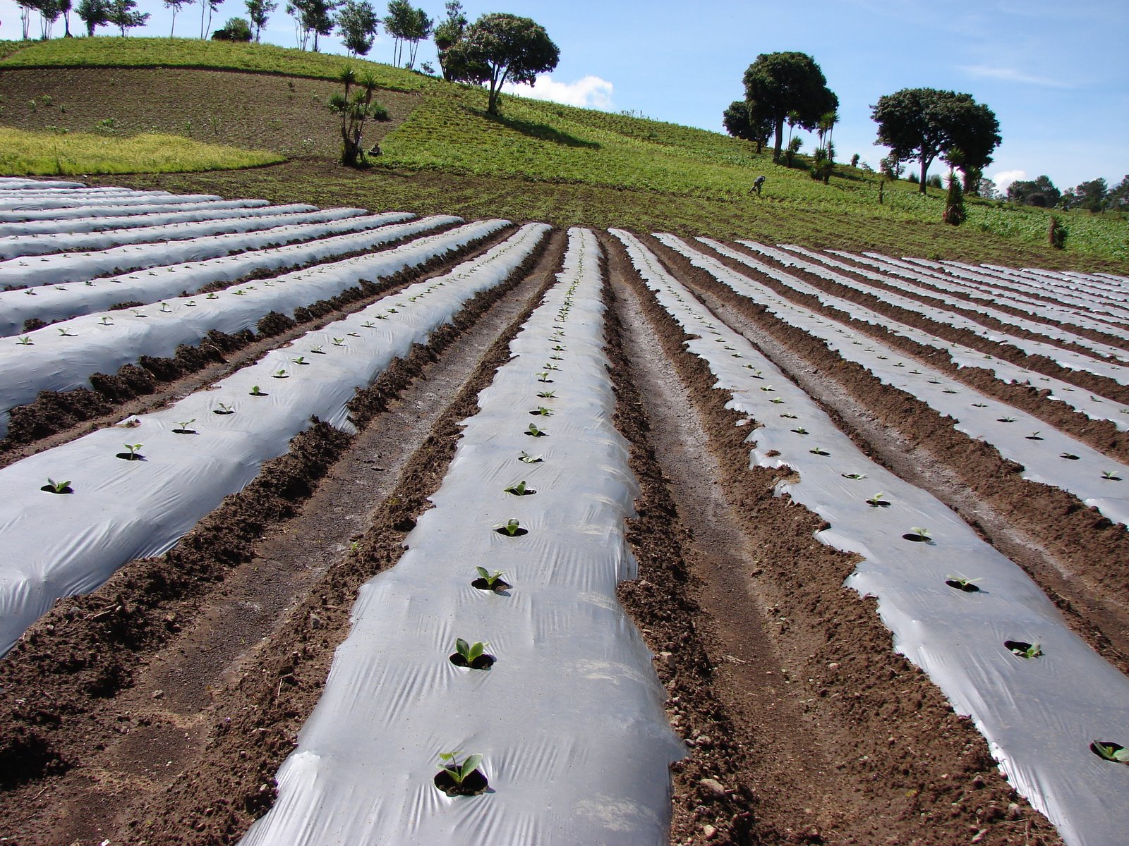 Láminas cobertoras de suelo en rollo para cultivo lineal y cuadrados para plantines
